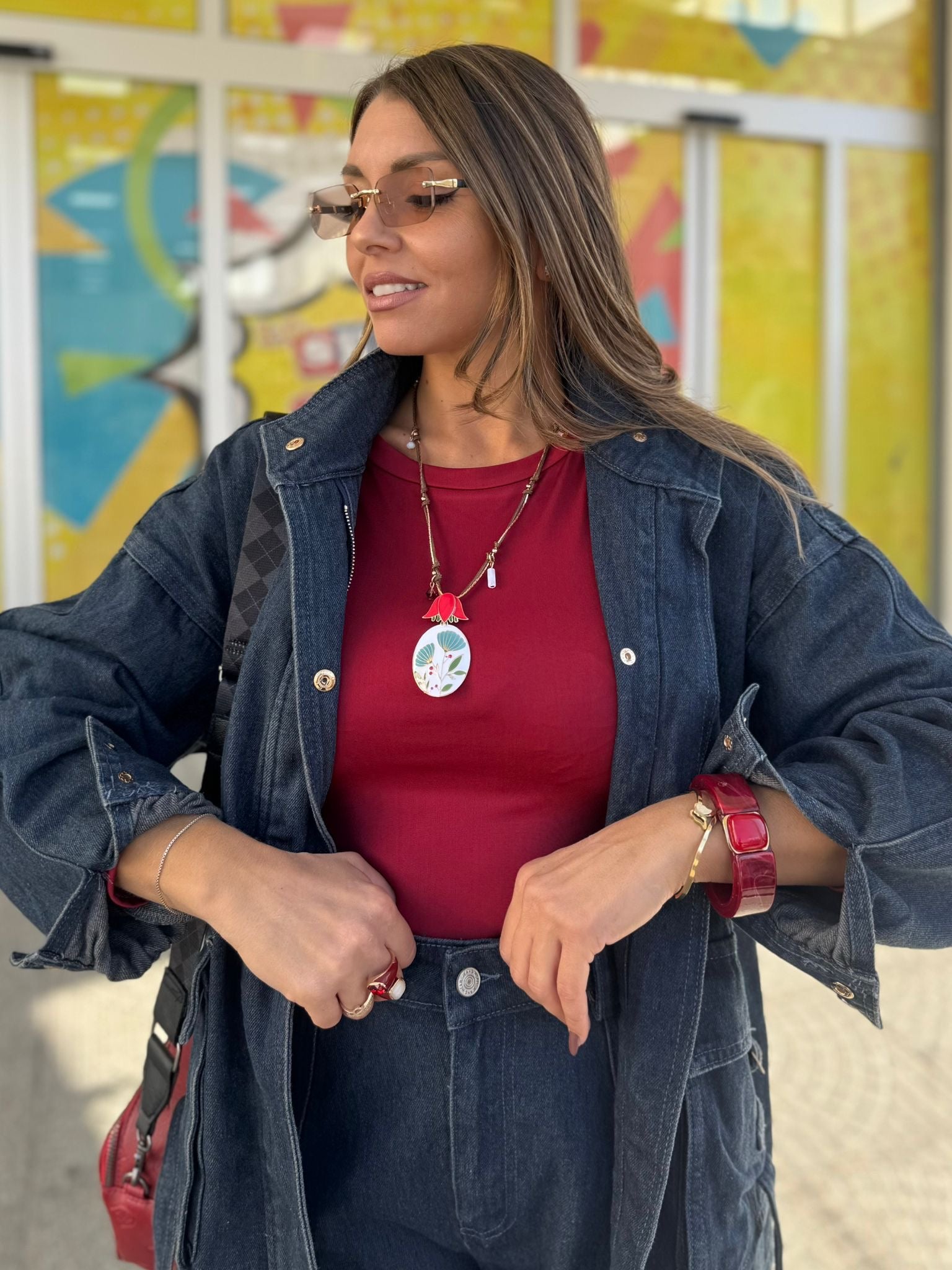 Collana con perline e ciondolo floreale