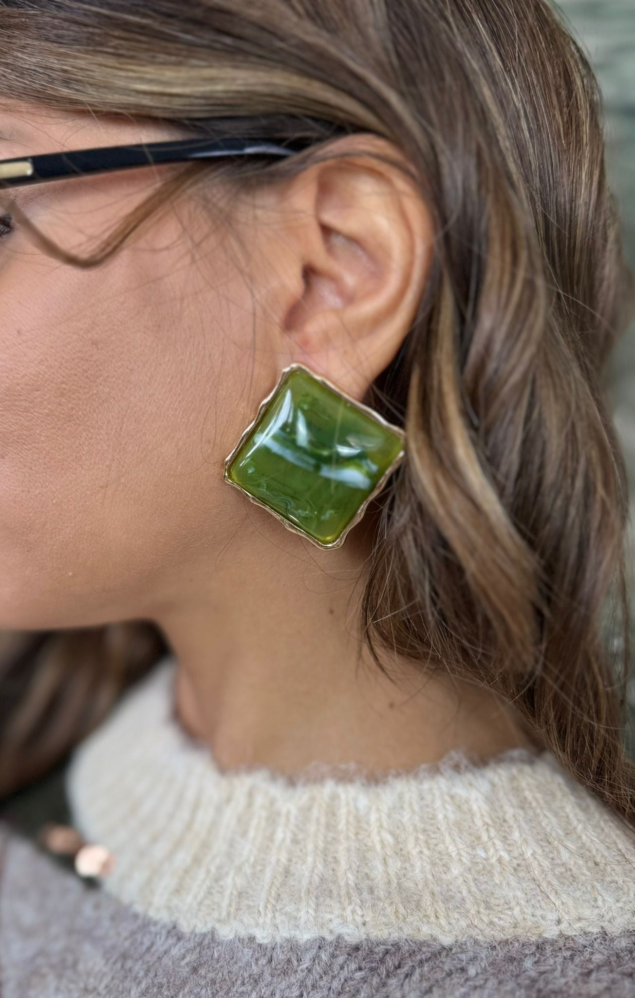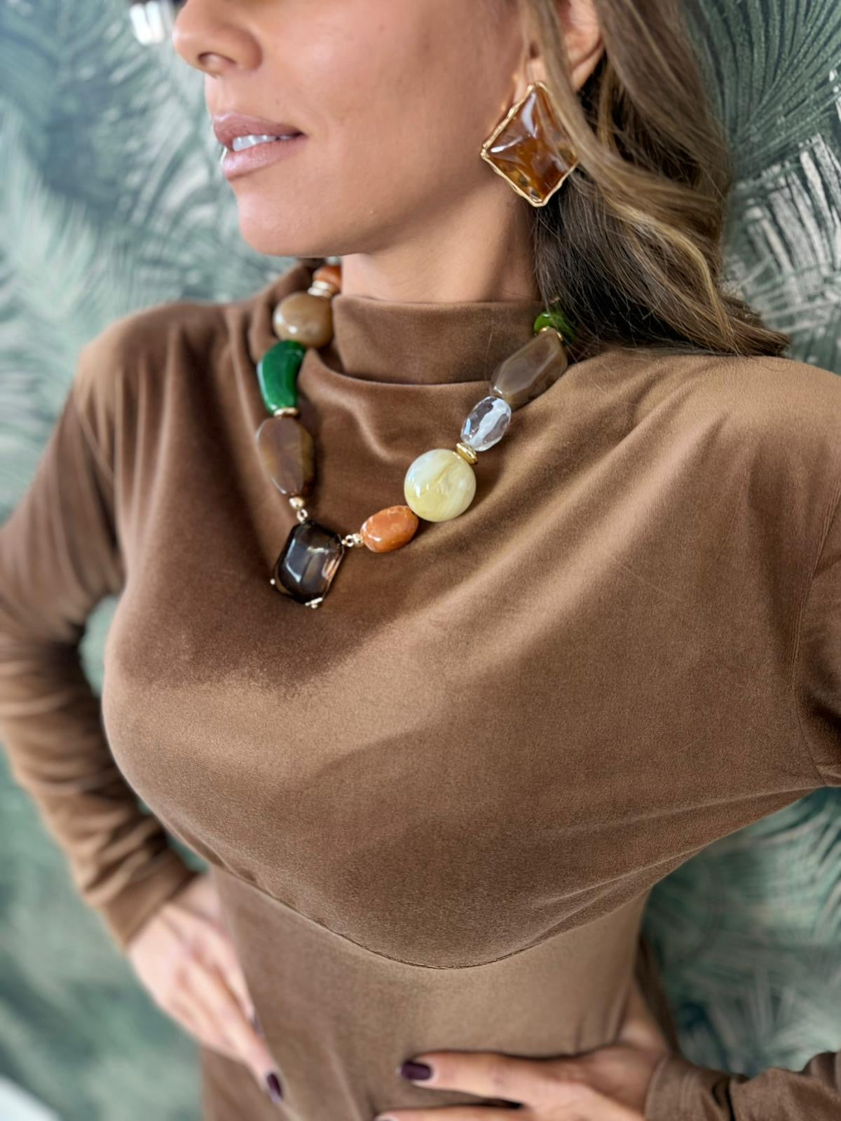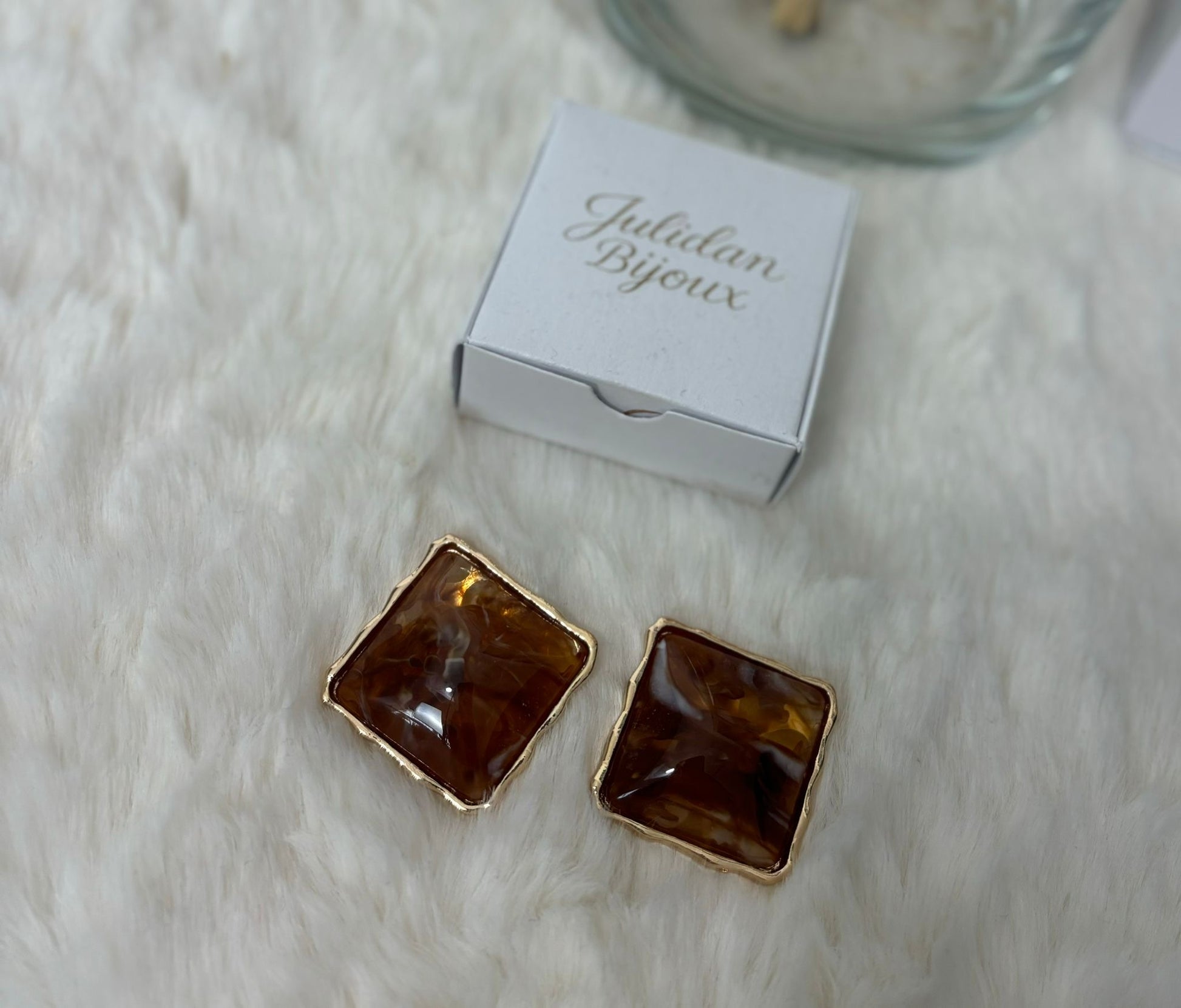 Orecchini a bottone con pietra incastonata in una montatura color oro