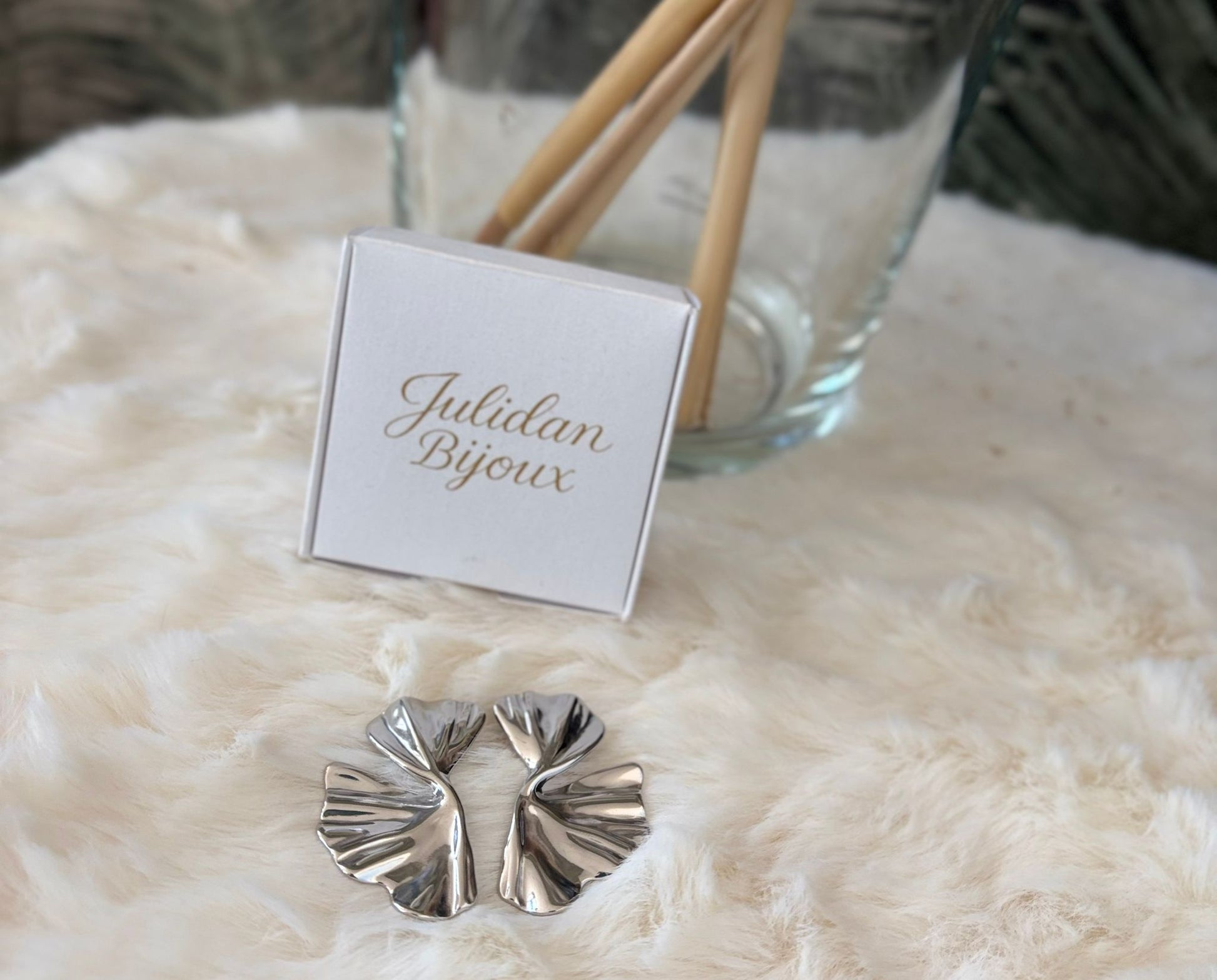 Orecchini a foglia in acciaio placcato argento
