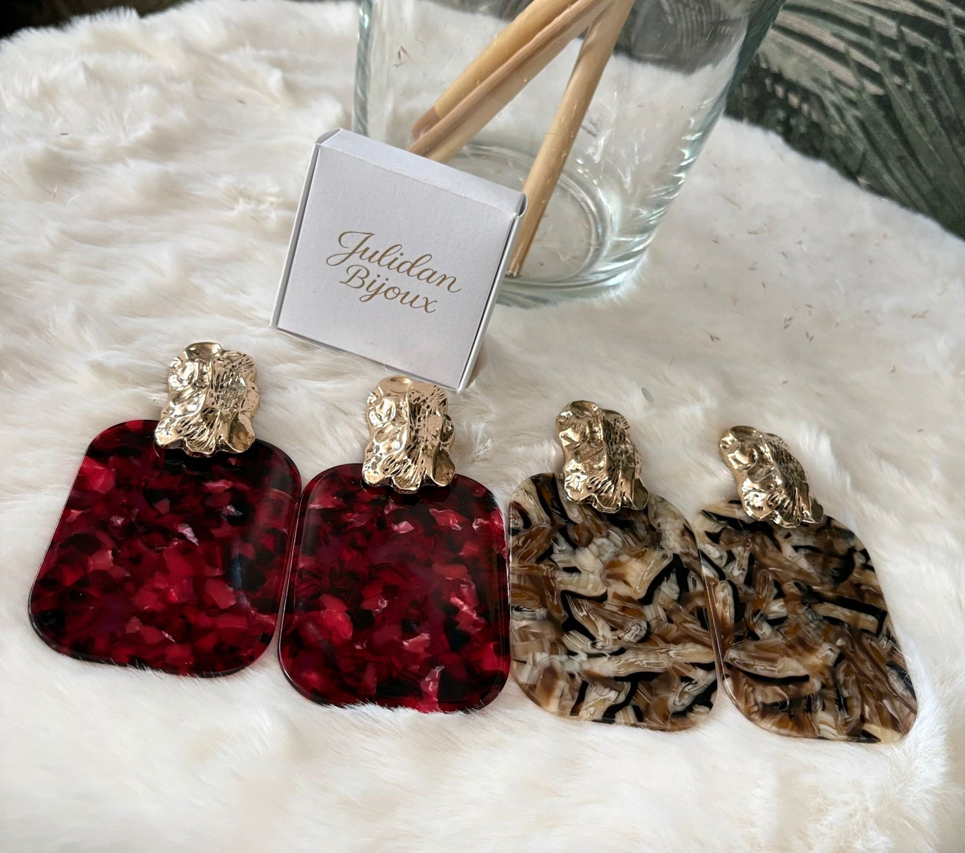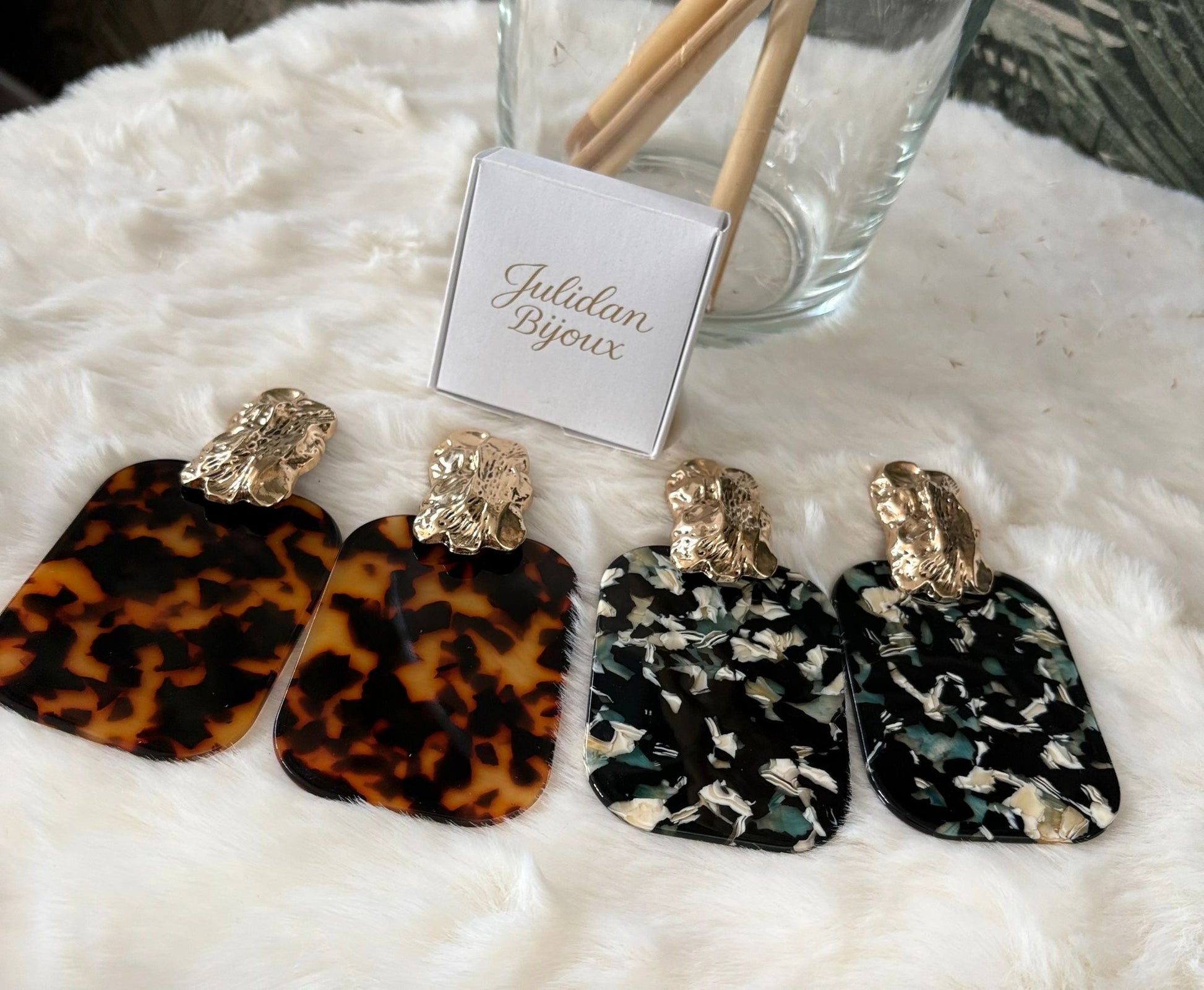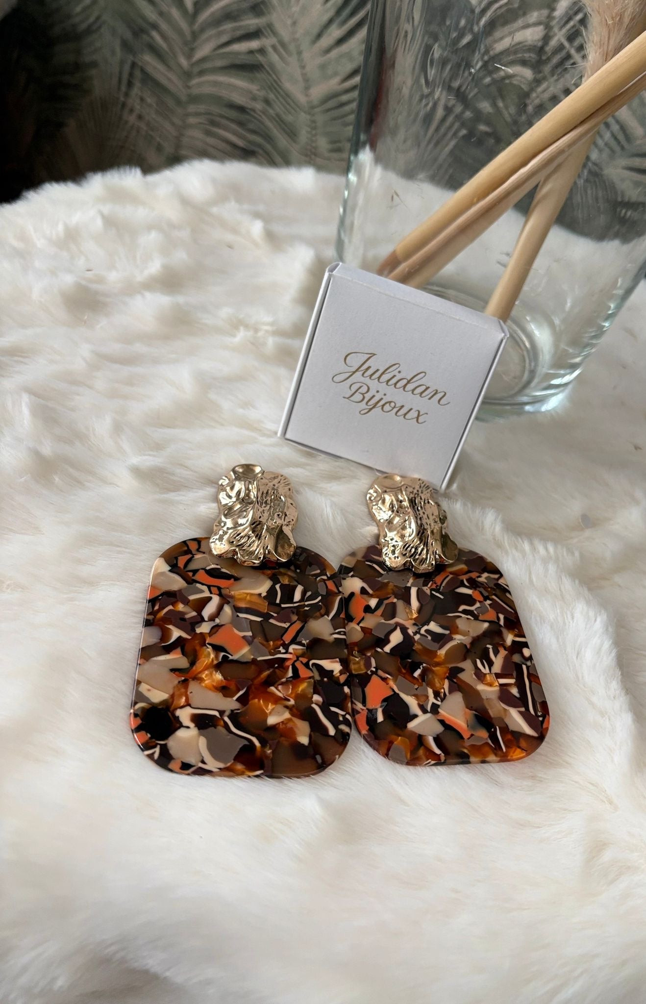 Orecchini pendenti in resina con motivo tartarugato