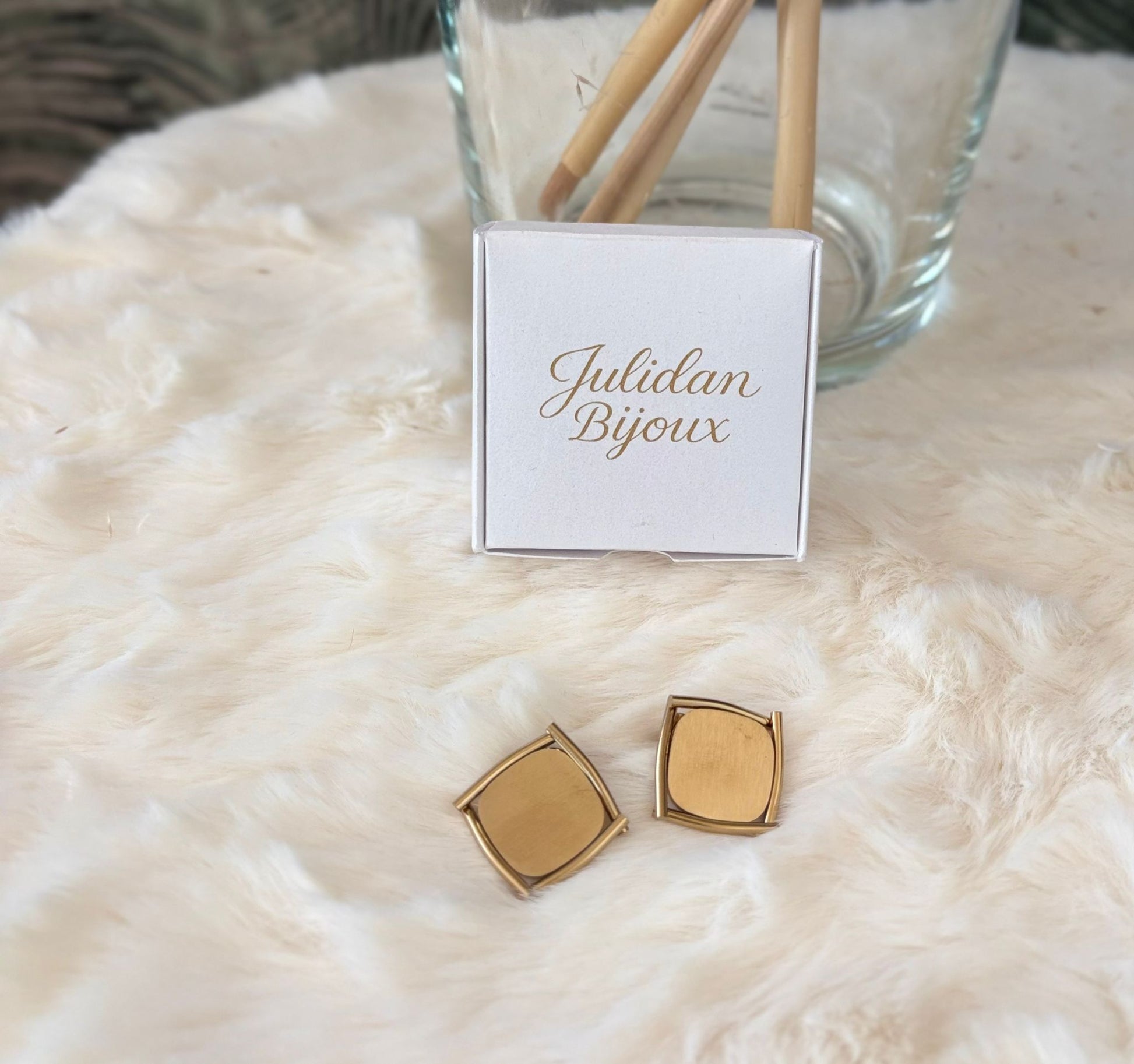 Orecchini piccoli quadrati con bordi curvi