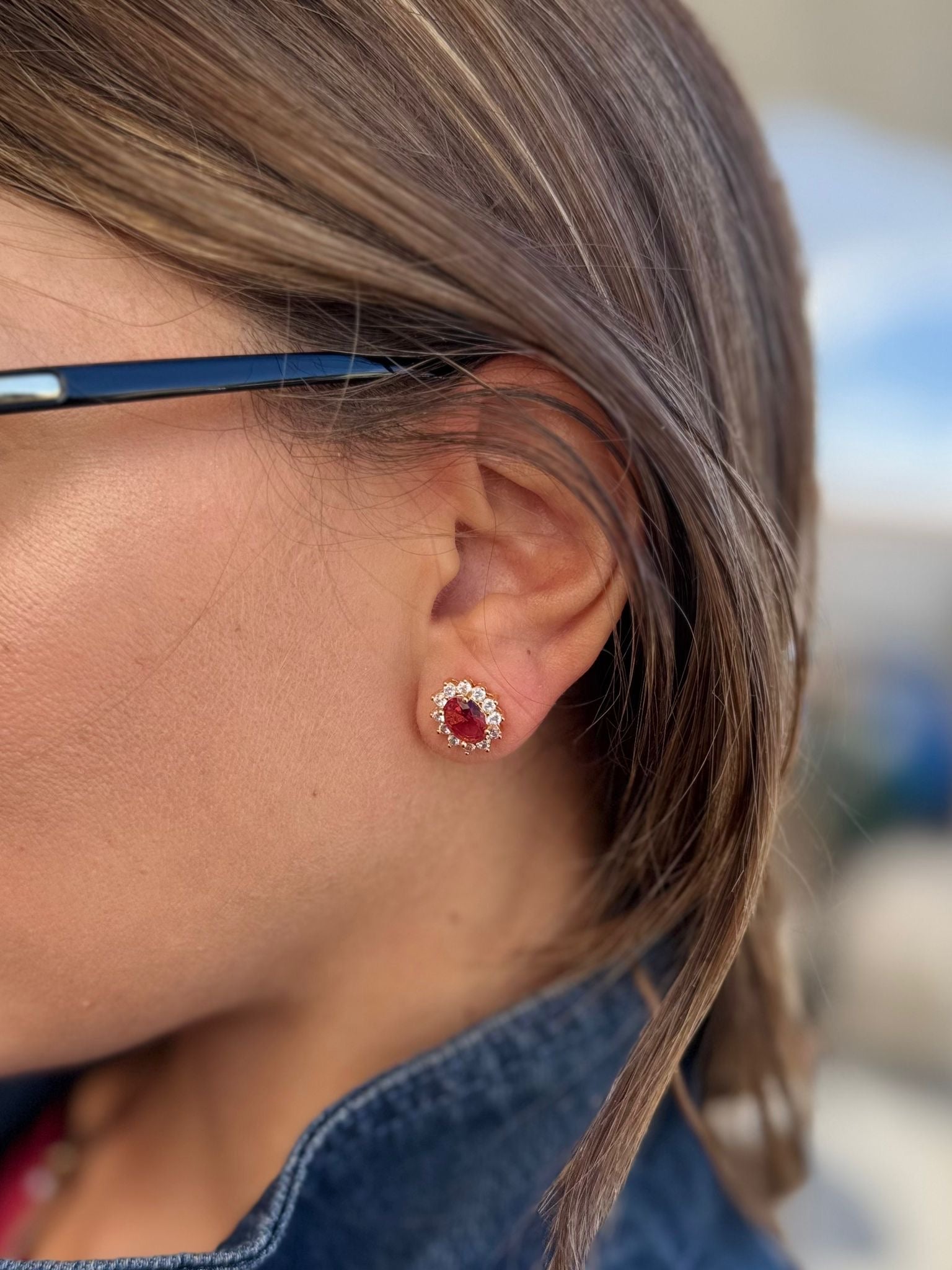 Orecchino vintage con rubini e diamantini